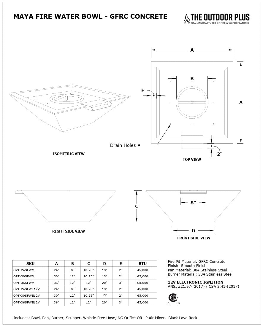 - Fuel: Natural Gas or Propane.