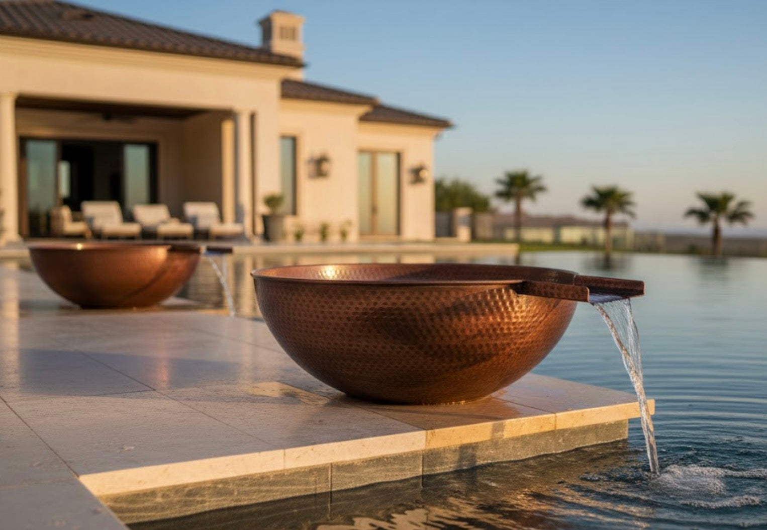 The Outdoor Plus Sedona Copper Water Bowl is a gorgeous round piece of curved lines, designed to create a waterfall into your pool or water feature that will add a touch of movement and sound to your outdoor living area.